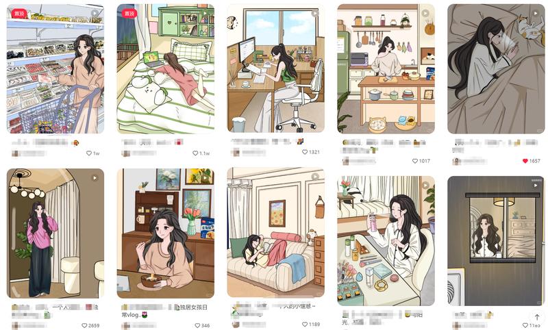 - 案例账号 该账号主打一个独居宅女的精致生活,不仅让人心向往之,同时还疗愈内心。 除此之外,文案也是温暖且有力量的,鼓励单身女孩向上成长。 这样三观超正的虚拟IP,特别符合当代女性的价值观。 但是AI虚拟IP也并不是什么新鲜事了, 在AI技术大爆发之前,像初音未来、四宫辉夜这样的虚拟偶像已经在二次元圈里风靡一时。 美国一网红创造AI分身与1000个男友虚拟恋爱,并且月入数十万的案例也让AI虚拟IP短暂出圈。 这表明,用户更在乎的是情感价值的提供,而不是形象是真人还是虚拟。 Tips:在作品中需要提前设计,预留好广G位,让金主爸爸看到你,这对后续的变现很重要!!!