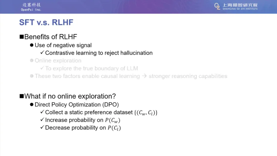 先说结论,如果能够实现 PPO 算法,PPO 的效果将会远远超过 DPO。因为正例反例和在线探索两件事都非常重要。