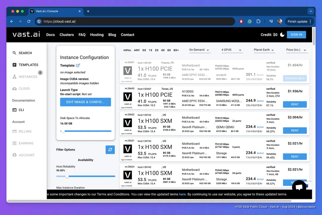 Vast.ai 基本上实行的是自由市场系统,全球的供应商被迫相互竞争。