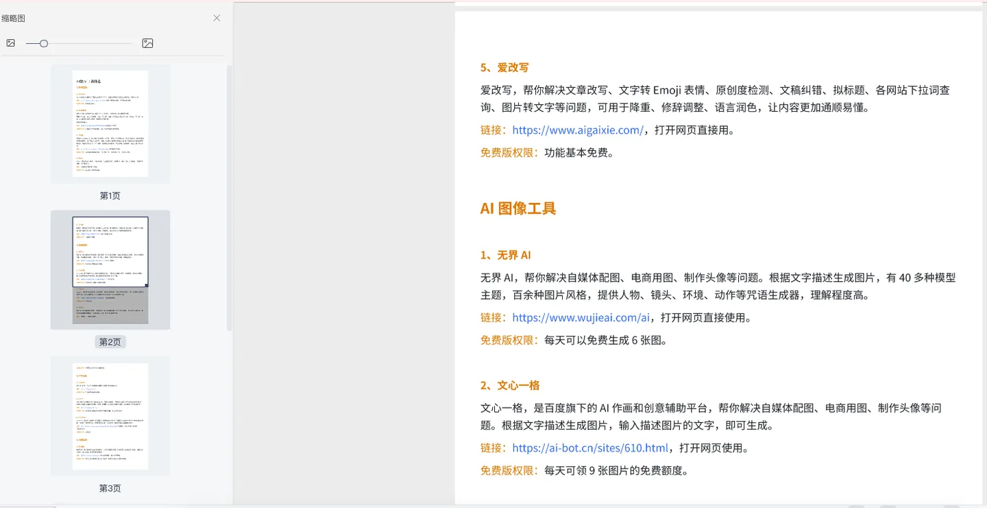 WPS AI 支持生成带格式的内容,也可以帮助你分析全文,并给出重点内容及相关原文页码,个人觉得这点上还是很实用且方便的。