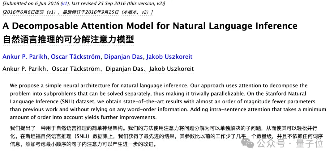 它不仅是当今ChatGPT为代表的大模型技术起源之一,其中介绍的Transformer架构和注意力机制也被用在了Sora、AlphaFold等众多改变世界的AI技术之中,是当之无愧的传奇。