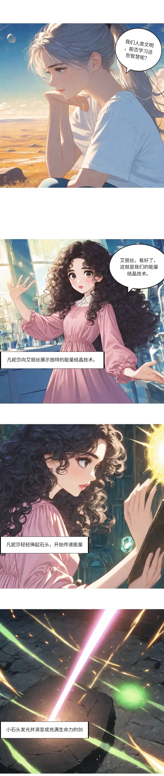 具体,我们可以看下图这个故事效果《艾丽丝的多元宇宙穿越之旅》: