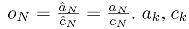 将其映射到单一输出 o_N = Attention (q, k_1:N , v_1:N ) 。给定 s_i = dot (q,k_i),输出 o_N 可表述为: